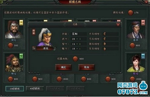 招募名将需要消耗一定的将魂兑换,将魂可通过举办国宴获得。各个国家的玩家只能招募属于自己国家的9个特色武将。