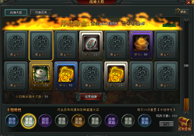 吕布正式上线,新增对应模块战神天降。神抽吕布将魂换取神将吕布。