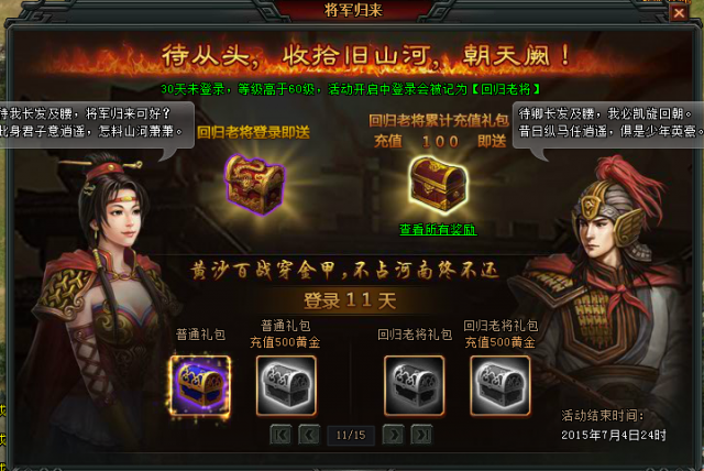 3.添加将军归来模块(老玩家回归奖励),每日领取更多豪礼。