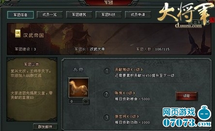在全新的军团系统中,军团福利也大大升级,玩家每日不但可以领取到大量粮食,还可以领取到大量功勋奖励。随着玩家捐建兵符产生的贡献度的提升,玩家可以领取的粮食和功勋也会大大提升。