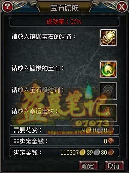 将宝石和装备放入镶嵌栏中会显示镶嵌成功率。