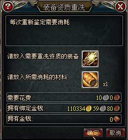 装备资质重洗需要,鉴定卷轴和一定金钱。鉴定卷轴可在宝石商城购买。