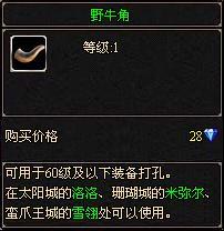 进行装备打孔操作需要道具野牛角,野牛角可在宝石商城中购买。