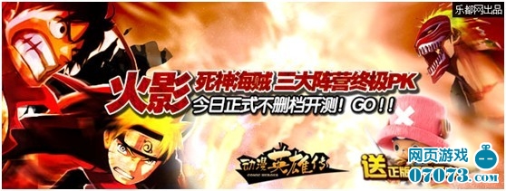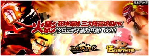 2013年乐都网强档新游-----《动漫英雄传》今日10:00点开启首次不删档内测!该游戏集齐了火影、死神、海贼三大超人气动漫英雄!这是近万动漫达人粉丝齐聚一堂的超级盛会!6月19日10:00点双线1服正式开启,不删档内测震撼启动!玩游戏乐都网还送你100%正版乔巴手办!动漫神作来临,引爆你的想象!!!