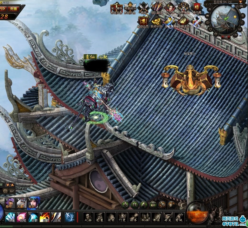最后向上跳到屋顶吧,就可以看见秘宝商人了