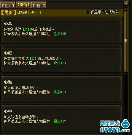 进入后选择仙阶称号,可以看到你目前达到的仙阶等级及称号