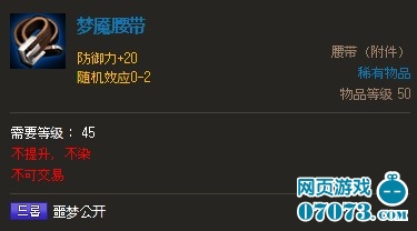 地城之光梦魇腰带属性介绍 地城之光梦魇腰带更多信息: 最大提升等级+0 地城之光梦魇腰带分解信息: