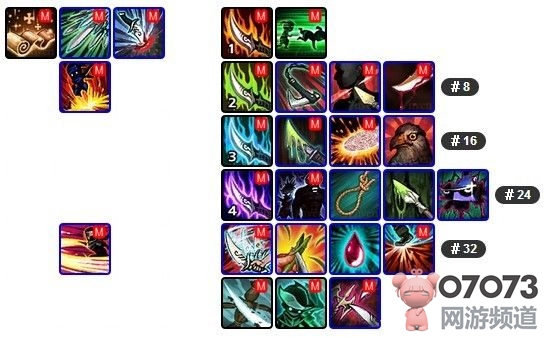 有字母M标记的为需要学习的技能