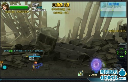 弹头联盟僵尸来袭的场景并不大,进入游戏后玩家往前走会看见一个传送门,倒计时结束后会从这个传送门里刷新出大量僵尸,僵尸不会攻击玩家,而是直奔我们的保护对象——女间谍。