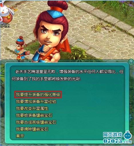 2) 与长安NPC:装备强化大师对话并选择“我要提升装备的强化等级”