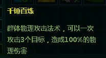 很明显 这是一个群攻技能 一次攻击3个目标 对于刷野和团P来说 这是非常好的技能