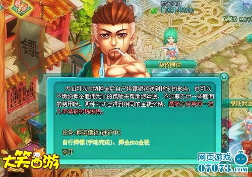 大笑西游押镖是获得大量金钱的途径,大笑西游押镖是要分玩家等级的哦,大笑西游押镖玩家等级越高,可接取的任务就越重。