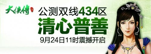 寻绿巷,素琴张,一曲清心普善凉;笑傲此生花正好,踏歌江上月如霜。大侠传公测双线434区(S434):清心普善服务器即将于明日(9月24日)11:00开启。欢迎各位新老用户进驻游戏,体验纯正武侠韵味,再续我们这一代人的武侠情缘!