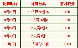 个人挑战赛竞猜积分规则如下: