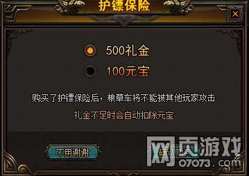 3、开始押运时可购买护镖保险,若购买了护镖保险,粮草车将不能被其他玩家攻击