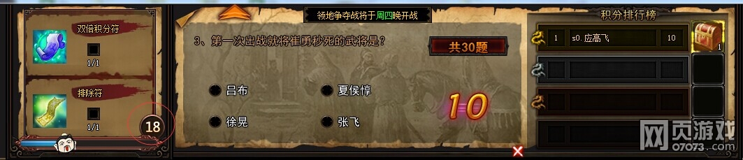 30题答完后,答题积分前20名可获得对应的额外礼包奖励。