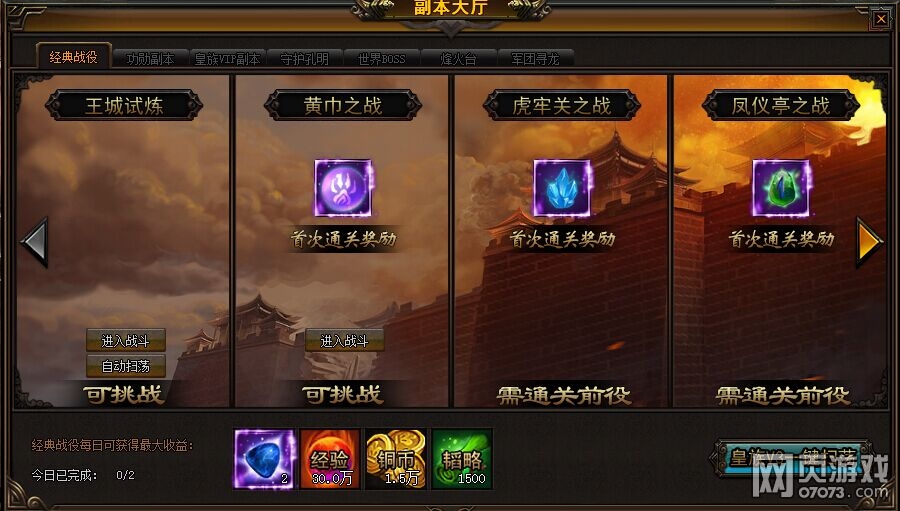 点击界面右上角的“副本大厅”即可打开副本界面,点击“经典战役”,即可选择您即将踏上的战场。