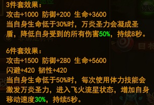 万炎灵石可为防具(护肩、衣服、裤子、鞋子、手套、腰带)附加万炎套装,套装达到一定数量可以有特殊效果。