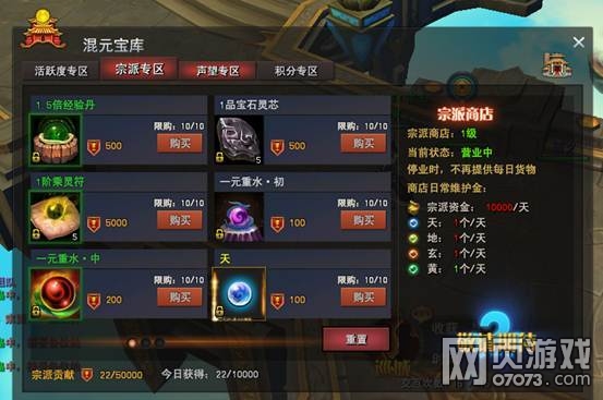在宗派中,玩家不光可以获得宗派属性加成,还可以使用宗派贡献在“混元宝库”的宗派专区,使用贡献兑换强力材料。