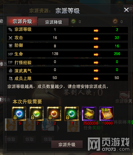 玩家26级会开启宗派系统,此时玩家可以创建或加入宗派。