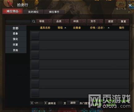 玩家可以通过拍卖行系统,快速查找到其他玩家摊位的物品,通过等级、品质、种族、货币等系列可以进行筛选,也可通过名称来进行筛选玩家想要的物品。
