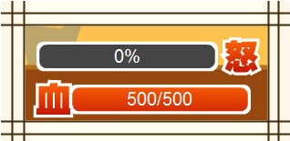 下方右边的工具栏是“血槽”和“怒气槽”。“血槽”一旦为0,则失败,游戏结束。“怒气槽”一旦到100%,便可以发射威力巨大的怒气类的绝技。