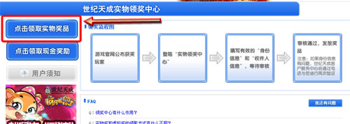 1、 首先打开“世纪天成实物领奖中心”(链接http://app.tiancity.com/portalprize/index.html)