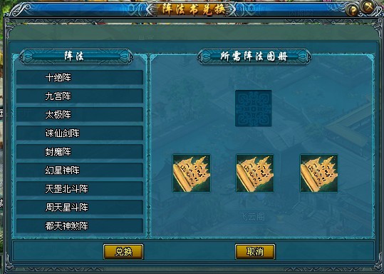 玩家通过收集各类阵法的上、中、下残卷图纸,找本国主城飞云阁据点的海外散仙NPC兑换对应的阵法图册。