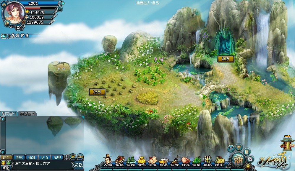 《凡人修真》游戏世界中的仙园主要由药园和洞府2大场景构成。玩家等级达到10级时,点击功能按钮区的“仙园”图标即可自动开通仙园。