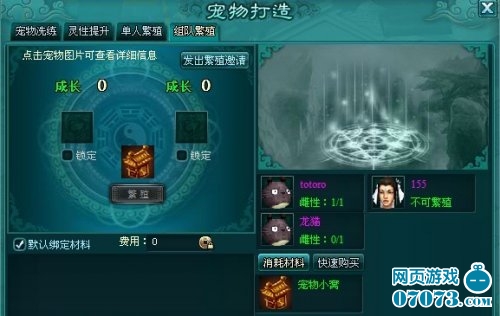 每个从宠物蛋中获得的宠物初始成长都为20,但是可以通过洗练来提高(上限为80),成长值影响宠物每次升级时获得的属性点数的多少,所以宠物成长洗练是越早越好;灵性初始都为0,也可以通过提升来增加(上限为5),与成长不一样的是,影响属性百分比的灵性不需要从小提升哦,只要灵性提升成功,宠物的属性会即时发生相应的增加,每1点灵性增加宠物基础属性的10%。