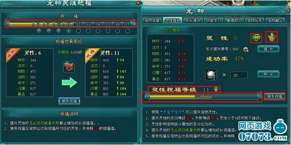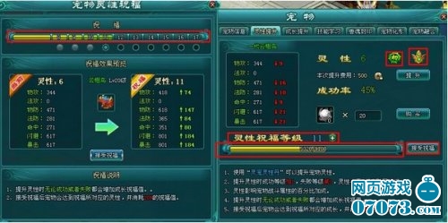 右上角的2个图标,分别是宠物提升到一定灵性会有属性加成,另一个是灵性达到一定程度开技能槽,这个就要你自己体验就知道喽!