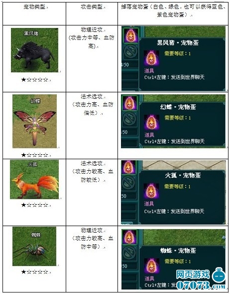 简单说,就是捉宠物,捕捉形式是将怪物打掉,系统会随机掉落该怪物的宠物蛋,将宠物蛋打开就可以获得宠物了。宠物怪的攻击不高,非主动攻击,不过,宠物岛有个相当BT的东西,所谓的护岛守护神,你进入它的视线范围的话,必死无疑,一招秒掉你。它属于巡逻类型的怪物,所以可以等它走开再打怪。下面是宠物岛一些宠物的资料: