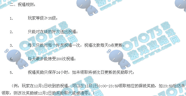 等级达到35级后自动开启聚宝盆功能,可以接受好友的祝福和向好友的聚宝盆送出祝福。聚宝盆在每天凌晨0点,会将祝福值转换成相应的货币奖励。