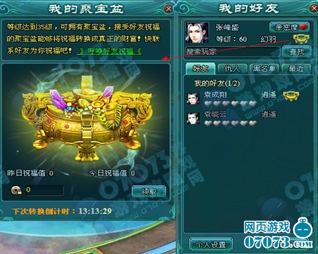 领取方法:在好友界面点击自己的聚宝盆即可领取。