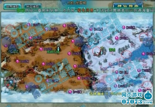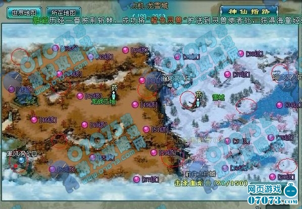 图上面画了红圈的地方,就是boss常出的点了。我们组好队伍,每人占一个点,boss刷了,然后四散寻找,这样可比一个人用筋斗云效率高很多的~。