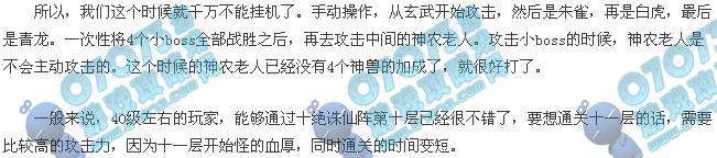 好了,40级左右通关十绝诛仙阵第十层的一些简单心得就写到这里,希望对新手玩家有写作用。同时祝愿大家在十绝诛仙阵中越走越高。
