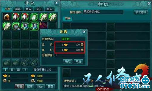 如果在凡人修真2你积累了用不上的装备、技能书、宝石......那么就去太机城商业区摆摊吧,即赚钱又腾格子。进入商业区,找一块显眼一些的空地,打开背包,点击“摆摊”按钮。在摆摊界面输入摊位名,然后将自己想要出售的物品拖到摆摊物品栏,选好货币种类,输入价格即可开始摆摊。建议:摊位名最好能体现你买的是什么。