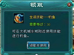 1) 在太机城的水域附近点击技能即可开始钓鱼。每次垂钓需要消耗一个“鱼钩”。