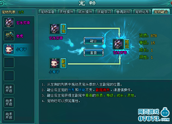 2) 融合后获得的灵宠将拥有主宠的外形和技能;