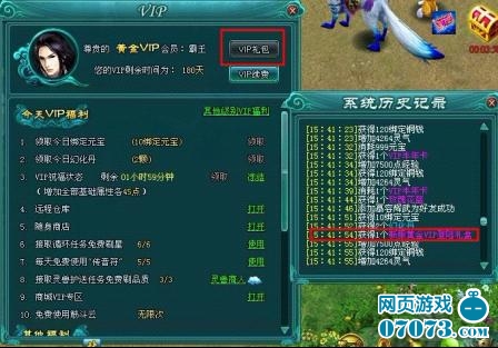 使用黄金VIP卡,打开VIP界面,点击会员名旁的VIP礼包,即领取了新服黄金VIP登陆礼盒: