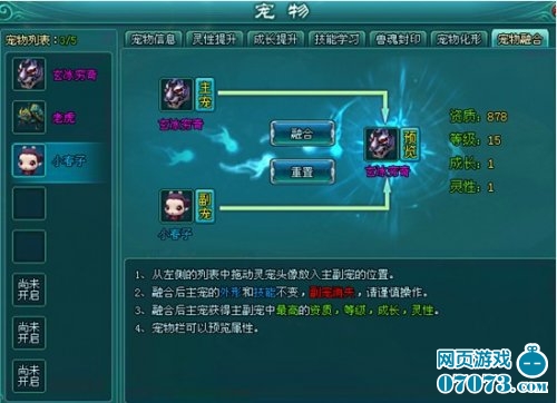 2) 融合后获得的灵宠将拥有主宠的外形和技能;