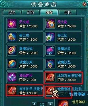 这时候,也要开始收集荣誉兑换技能了,打战场就有荣誉,如果恰好进了最强的阵营,那就捡到宝了,战场完了以后还可以有2000荣誉的奖励。荣誉换的技能作用相当大,尤其是武灵,有了战场技能才算是真正的肉盾。荣誉出了兑换技能,还可以换诛仙碎片和紫色装备,用途相当大。所以战场是必须参加滴。(这几个非常牛的技能书只能在荣誉天师那里兑换)