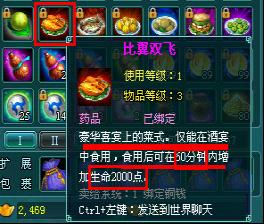 点击背包可查看所吃喜宴大餐的特效,