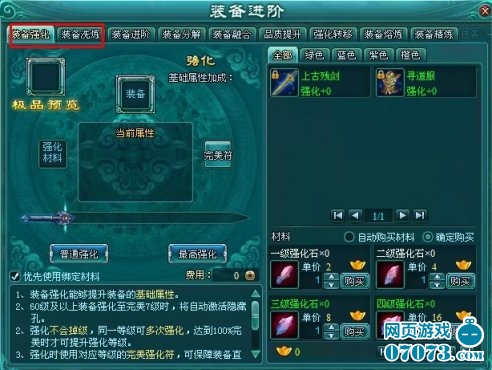 首先来看强化:完美强化到6是必须的,完美强化到7,8,9,10是需要的。强化没有什么好的方法,凡人修真2游戏的开发者设置的平均强化次数应该是10次,有时候一件装备强化5次就能完美强化,有时候一件装备的强化到完美需要20多个强化,平均数应该是10,所以强化装备的选择是每次购买10个强化石选择最高强化,如果强化不到完美就下一件,一次循环,至到强化至完美。
