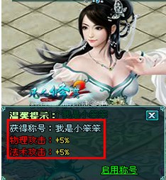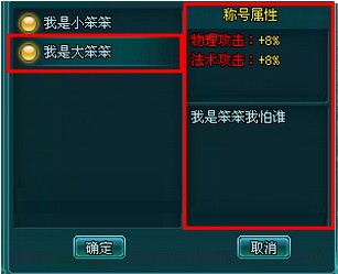 称号:我是大笨笨-攻击力+8%;我是小笨笨:攻击力+5%;(称号时效3天)