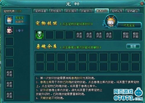 4)每次兽魂封印需要与技能等级相对应的兽魂封印道具;