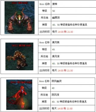 区域特点:进入洞内后PK模式自动转换为仙盟模式,可攻击所有非自己仙盟的玩家;该区域为BOSS区域,洞中刷出的世界级BOSS需要多人一起击杀。