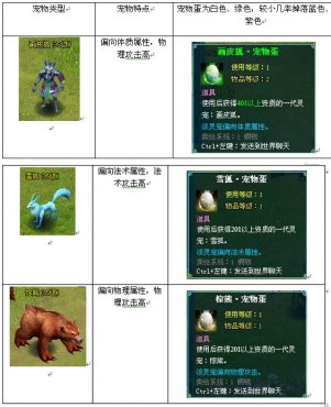 捕捉形式是将怪物打掉,会随机掉落该怪物的宠物蛋,将宠物蛋打开就可以获得宠物了。宠物怪的攻击不高,非主动攻击。下面是宠物岛部分宠物的资料: