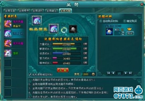 2. 坐骑洗髓不改变坐骑的总成长,只改变单项成长所占的百分比;