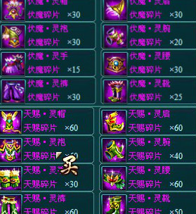 伏魔防具装备(头盔、肩膀、衣服、腰带、裤子、鞋子、护腕、手套)击杀古墓(精英)副本中BOSS获得,利用伏魔碎片换取。